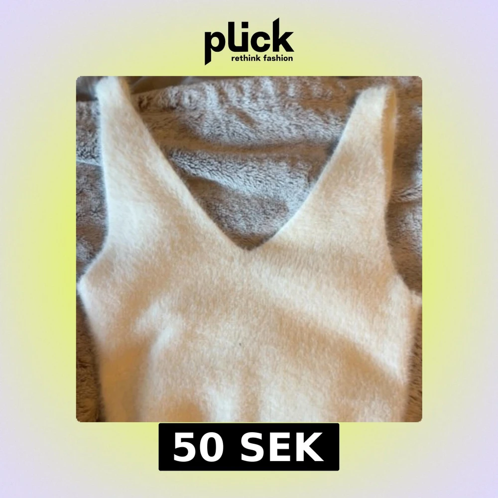 Säljer en mysig vit ärmlös topp med djup v-ringning. Perfekt för lager-på-lager eller som den är. Toppen har en mjuk och fluffig textur som ger en unik känsla.