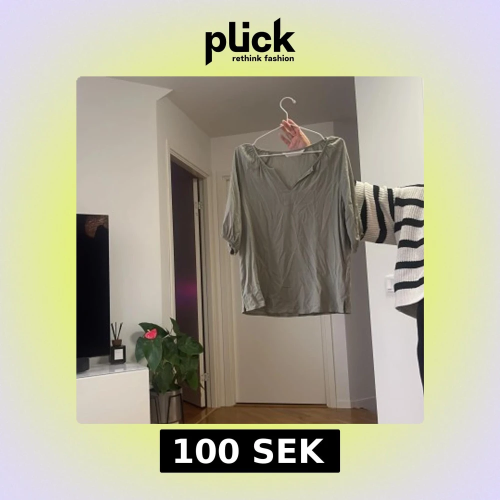 Säljer en ljusgrön blus med v-ringning och halvlånga ärmar. Blusen har en avslappnad passform och är tillverkad i ett mjukt, tunt material som känns skönt mot huden. Perfekt att styla med jeans eller kjol för en enkel och snygg look.