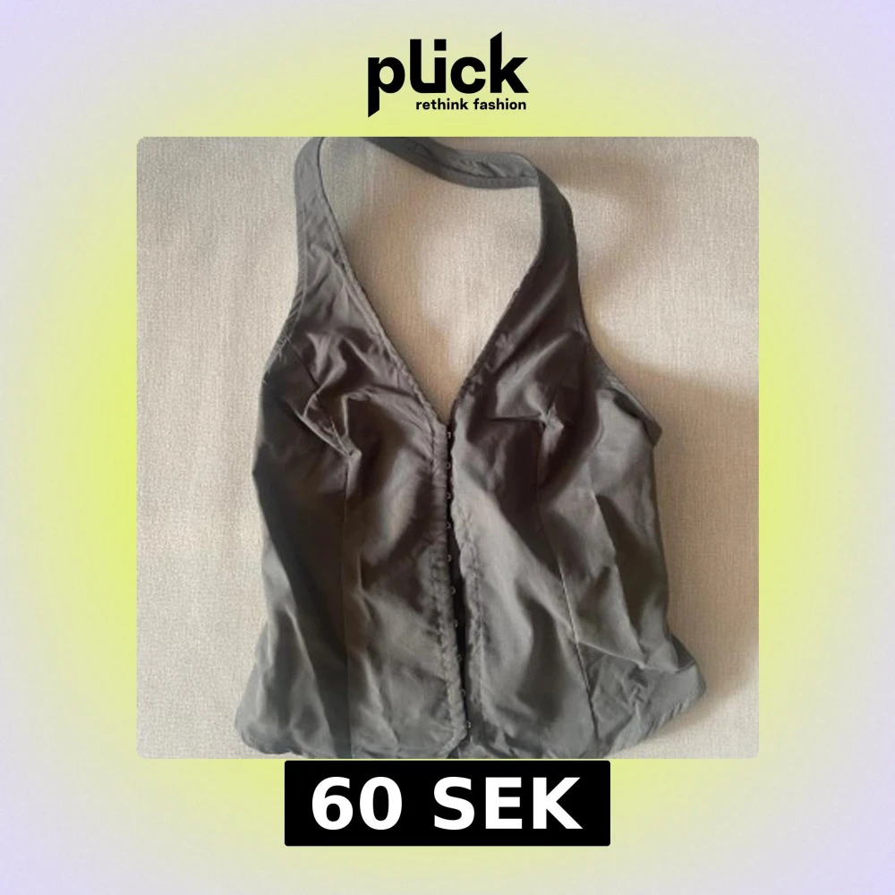 Snygg grå korsett-topp med djup v-ringning och smala axelband. Toppen har knäppning framtill med små krokar och är figursydd för en tight passform. Perfekt att styla med jeans eller kjol för en trendig look.