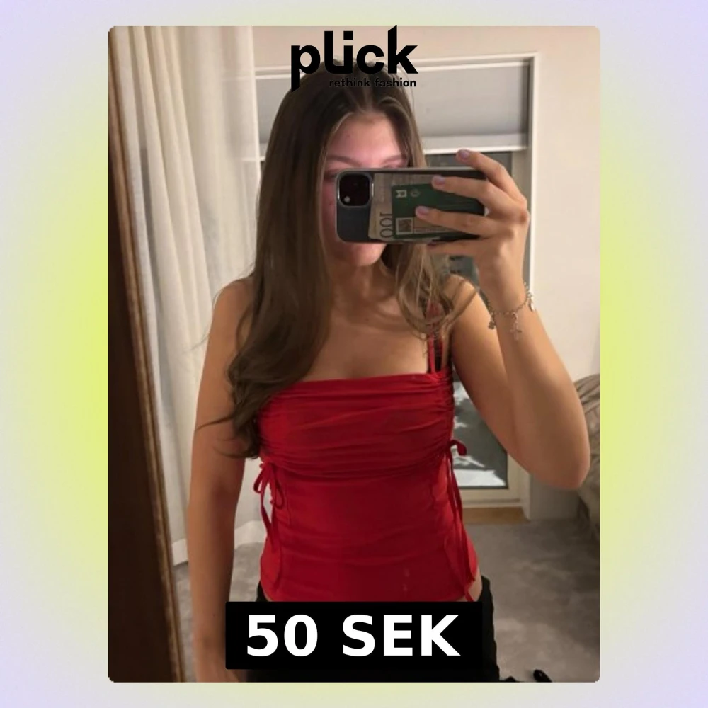 Snygg röd croppad linnetopp med smala axelband och snörningsdetaljer på sidorna. Toppen har en tight passform och är tillverkad i ett mjukt, stretchigt syntetmaterial. Perfekt för dig som vill sticka ut med en färgstark look.