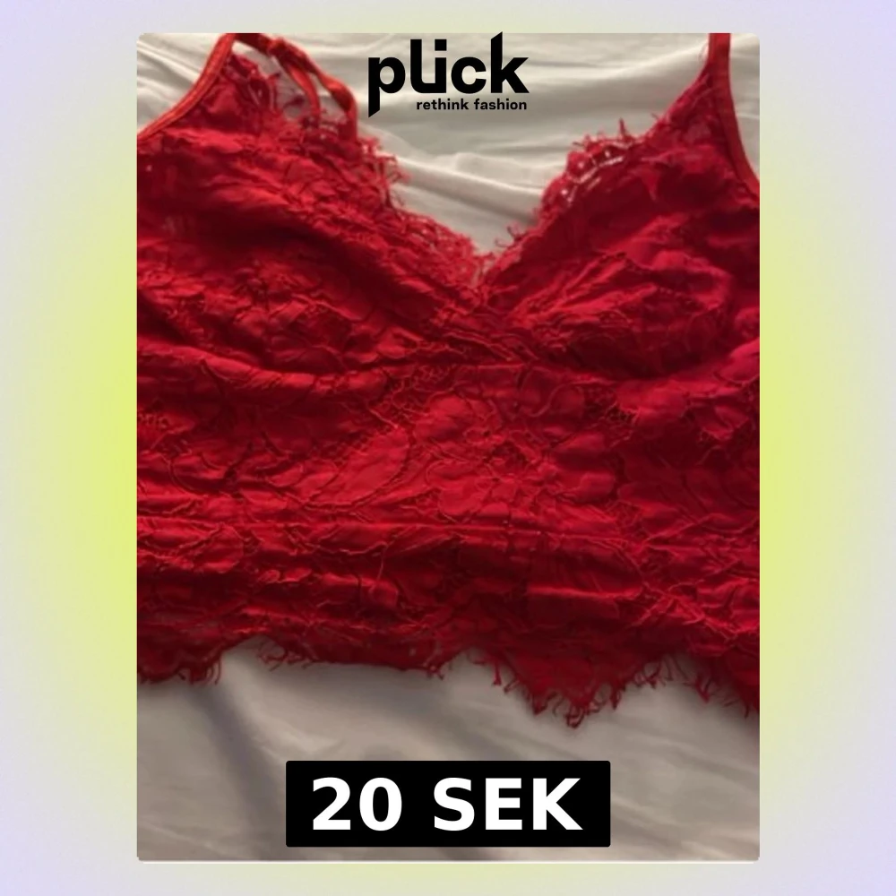 Superfin röd bralette i spets med smala axelband och v-ringning. Toppens spetsdetaljer ger en romantisk vibe och den är croppad i modellen. Perfekt att styla under en skjorta eller kavaj för en trendig look.