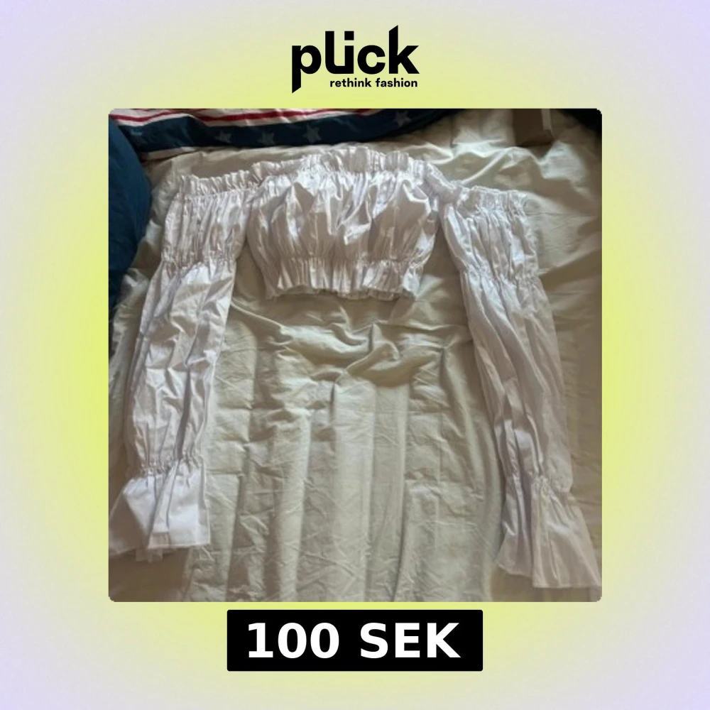 Säljer en söt vit offshoulder blus med långa ärmar och elastiska detaljer. Perfekt för en somrig look eller en avslappnad dag ute. Blusen har en luftig passform och är lätt att matcha med olika outfits.