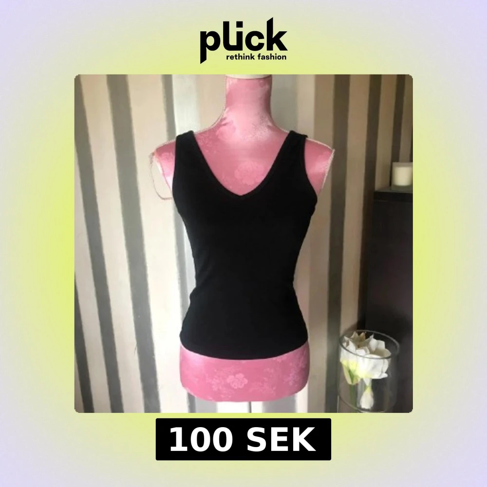 En svart, ribbad linnetopp med v-ringning både fram och bak. Toppen är ärmlös och har en slim passform som sitter snyggt mot kroppen. Perfekt att styla med jeans eller kjol för en clean look.