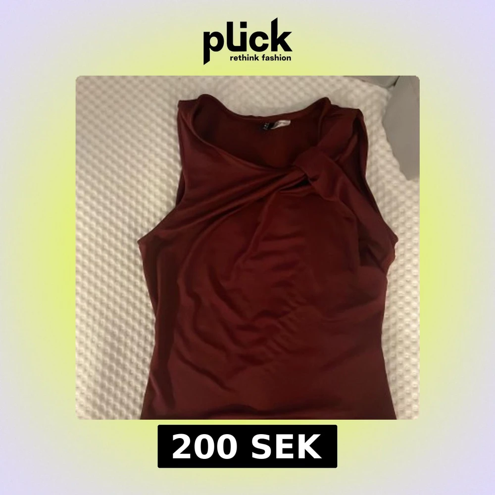 OANVÄND Snygg vinröd linnetopp från H&M Divided i storlek S. Toppen har ett omlott-detalj vid axeln och är ärmlös med rund halsringning. Materialet är mjukt och har en lätt glansig finish som känns skönt mot huden. Perfekt för dig som gillar stilrena och trendiga plagg. Köpt för 400 säljs för 200