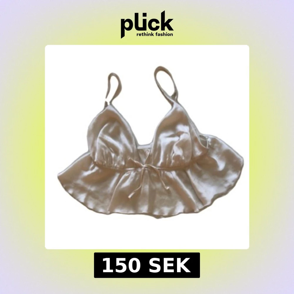 Snygg linnetopp i glansig vit satin med smala axelband och volangkant nedtill. Toppen har en söt knytning framtill och en lätt croppad passform. Perfekt för dig som vill ha en trendig och feminin look.