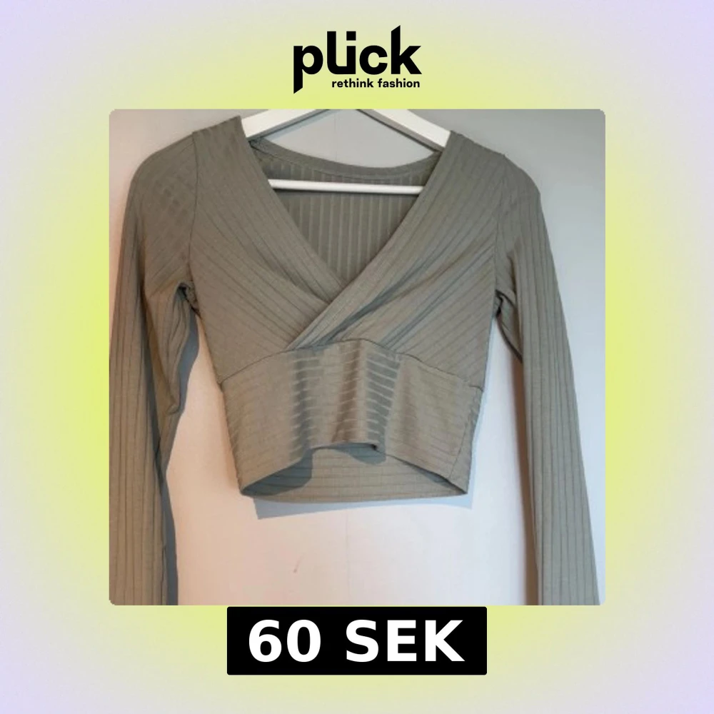 Snygg croppad omlottopp i grönt med ribbat material. Jätte skön och super fin!💕💕