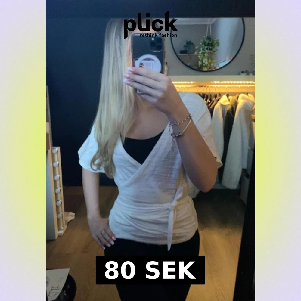 Säljer en fräsch vit omlottopp med knyt i midjan och korta ärmar. Toppen har en v-ringad design. 🤍