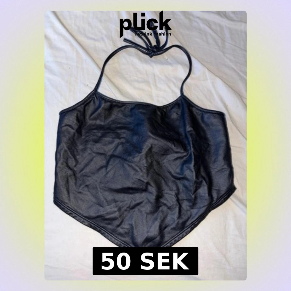 Snygg svart halterneck topp med knyt i nacken och spetsig nederkant. Tillverkad i 80% polyester och 20% spandex för en stretchig och bekväm passform. Perfekt för dig som gillar trendiga och minimalistiska plagg. S