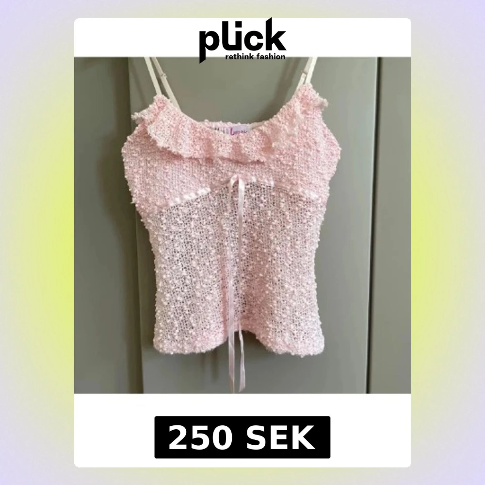 Supersöt ljusrosa linnetopp från Loana med smala axelband, volangkant upptill och en söt satinrosett framtill. Toppen har en luftig struktur och känns både romantisk och trendig. Perfekt att styla med jeans eller kjol för en gullig look.