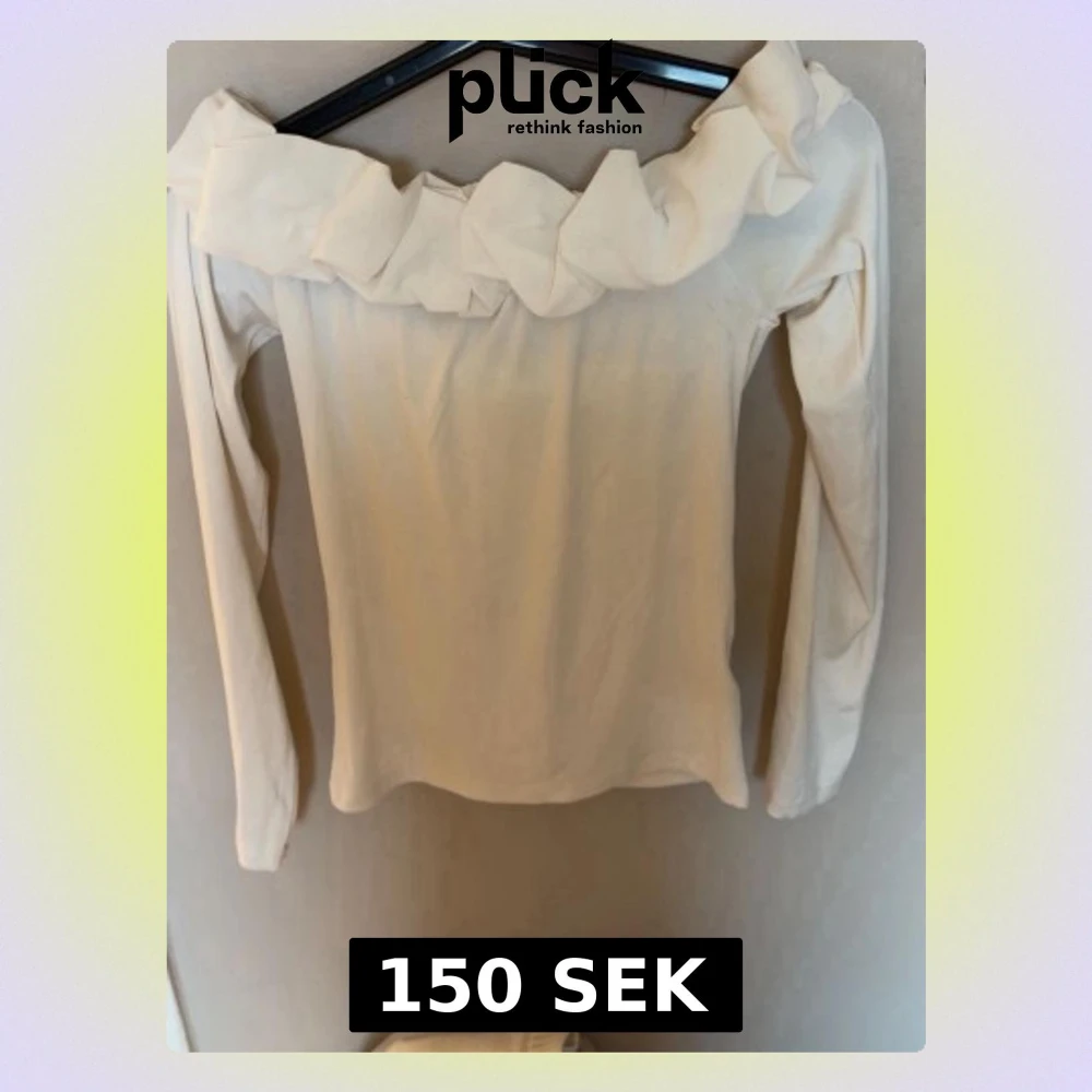 Trendig vit offshoulder topp med lång ärm och stor volang runt axlarna. Perfekt för dig som vill ha en feminin och stilren look. Mjuk och skön känsla i materialet.