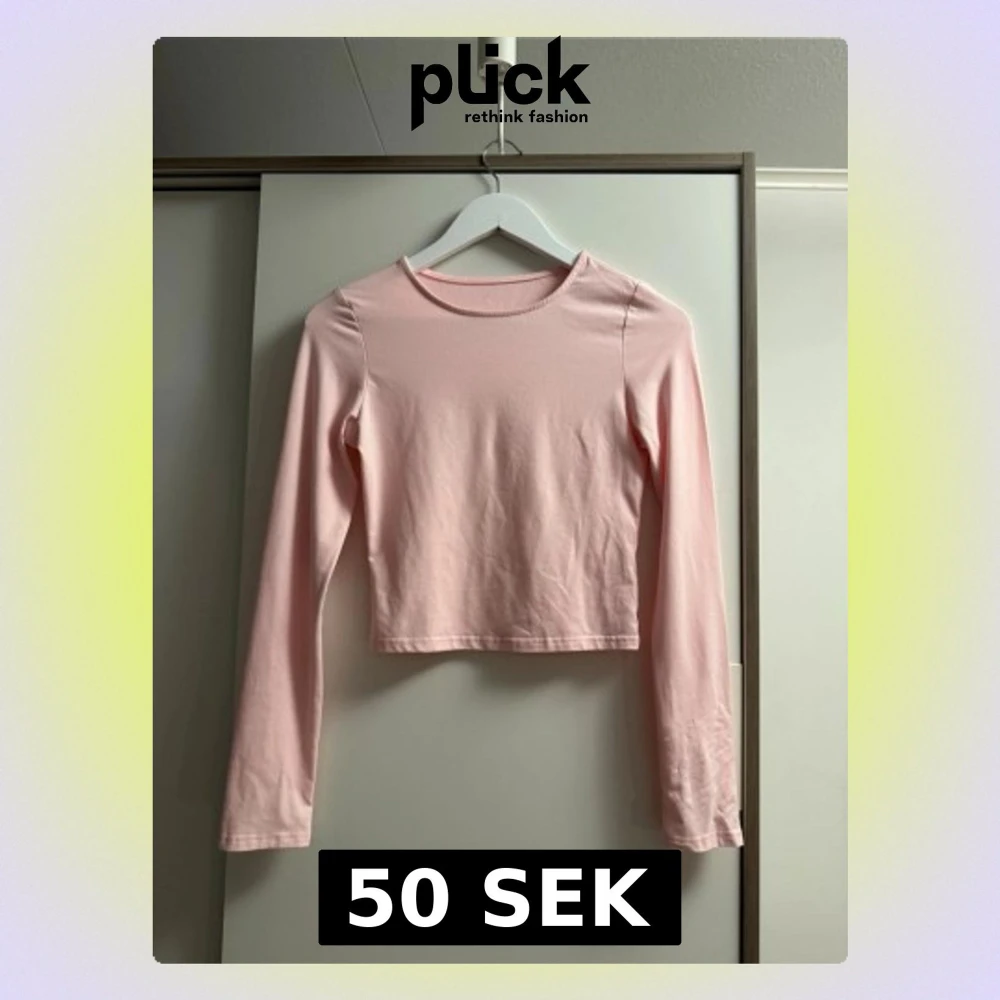 Säljer en ljusrosa croppad långärmad topp i mjuk bomull. Enkel och stilren design med rund halsringning och tight passform. Perfekt att matcha med höga jeans eller kjol.