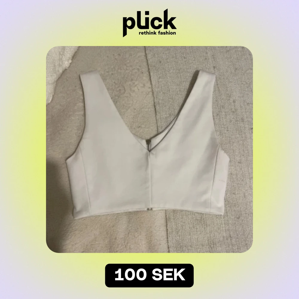 Säljer en stilren vit korsettliknande topp med dragkedja bak .Toppen har en v-ringad design och är ärmlös, vilket gör den perfekt för både vardag och fest. Den är i nyskick och passar bra till olika outfits.