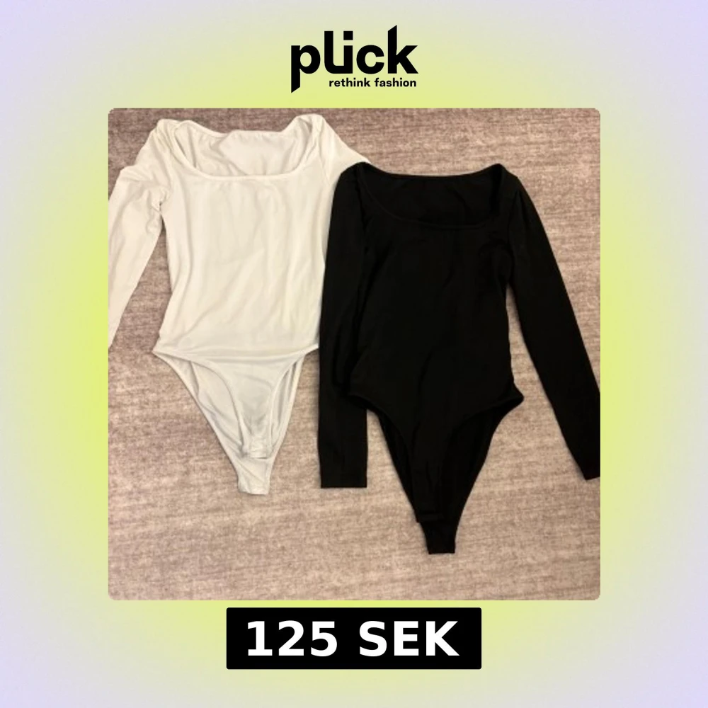 Två stilrena bodysuits i svart och vitt med lång ärm och rundad halsringning. Perfekta att styla till jeans eller kjol för en enkel och snygg look. Den vita är lite missfärgad från tvätten 💗