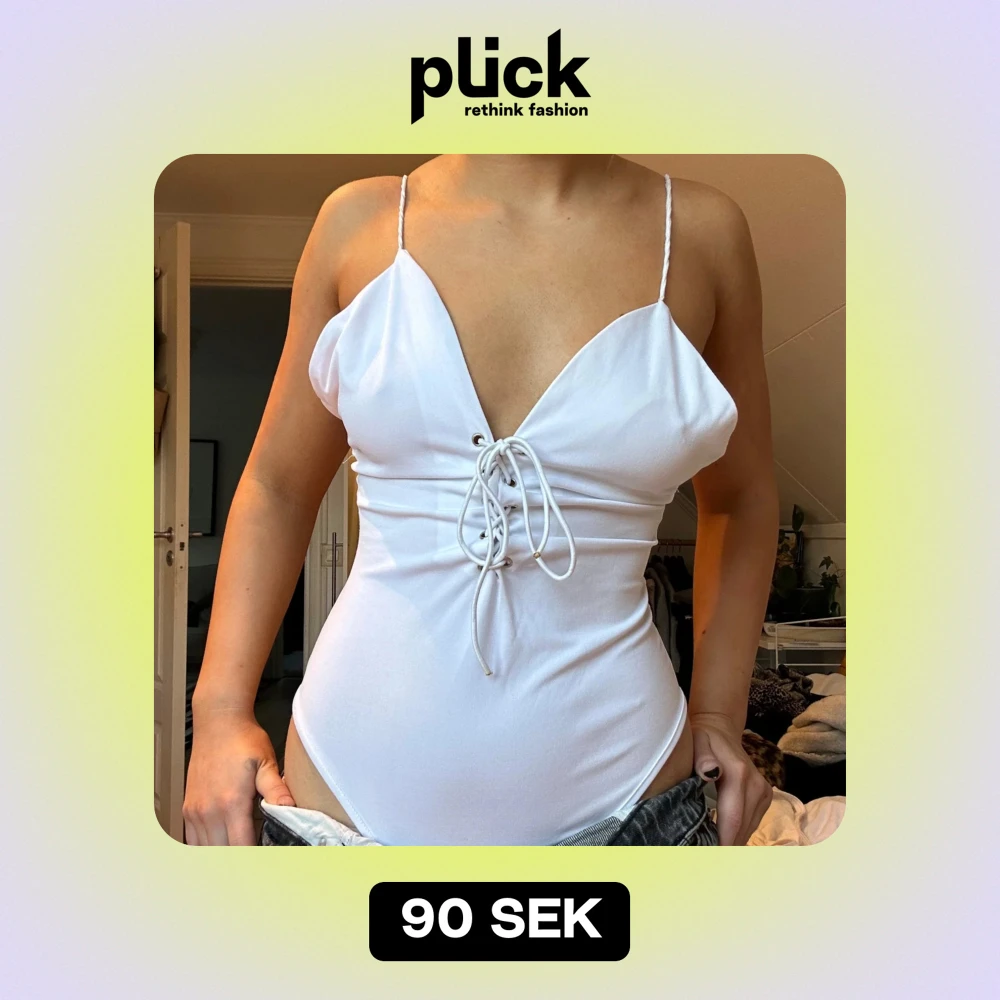 Säljer en snygg vit body med smala axelband och trendig snörning framtill. Perfekt till fest