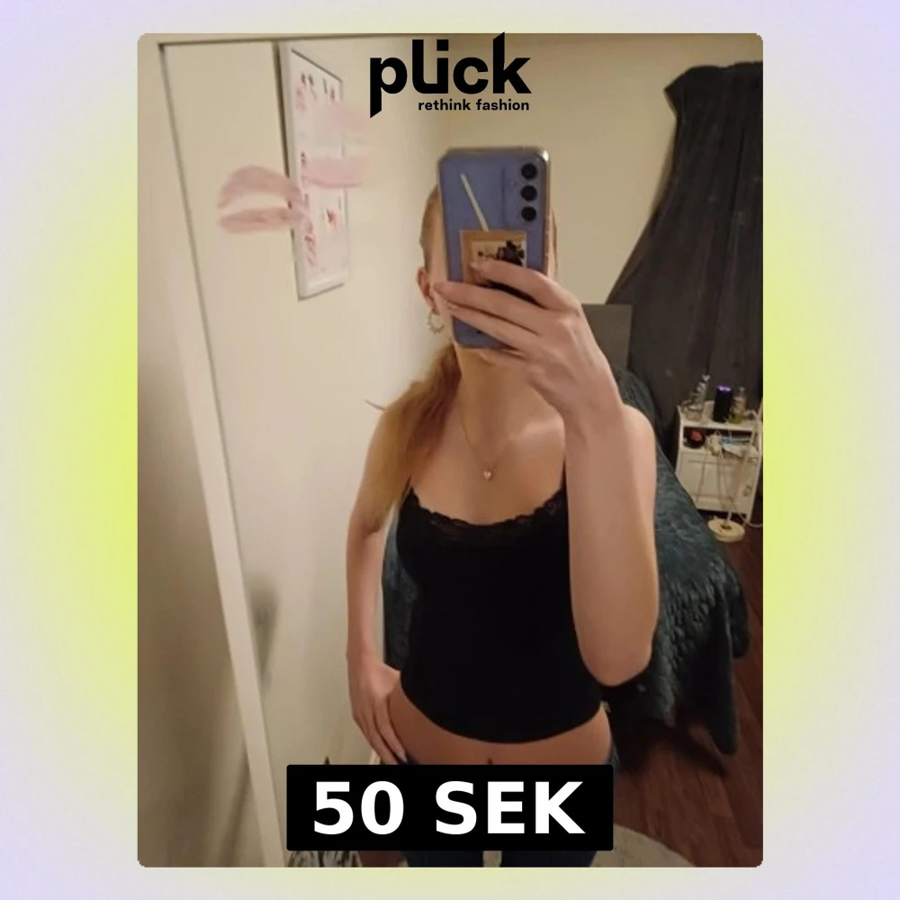 Säljer en svart linnetopp med smala axelband och snygg spetskant upptill. Skriv för fler frågor