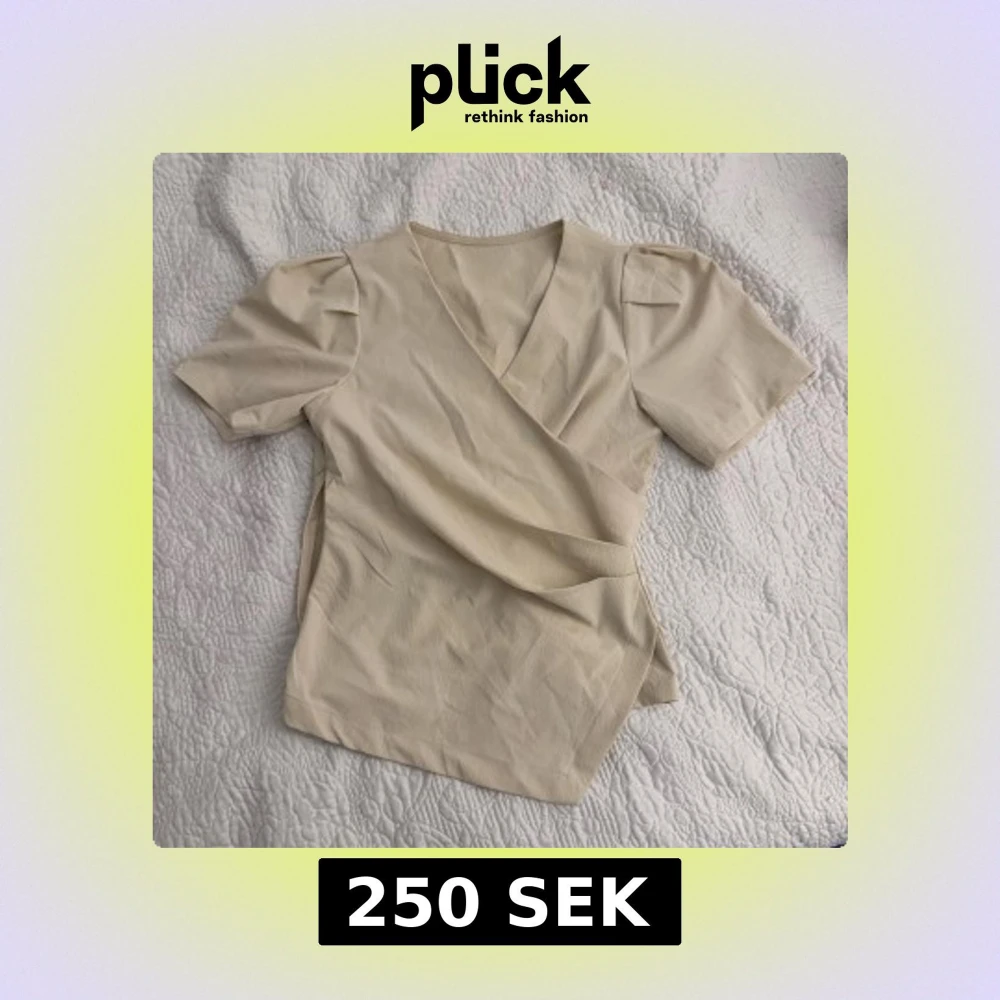 Snygg beige omlottopp med korta ärmar och v-ringning. Toppen har en stilren design med en diskret dragkedja på sidan för enkel på- och avtagning. Perfekt för en chic och avslappnad look.