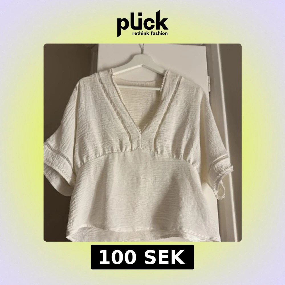 Säljer en vit blus med v-ringad hals och korta ärmar.⭐️⭐️