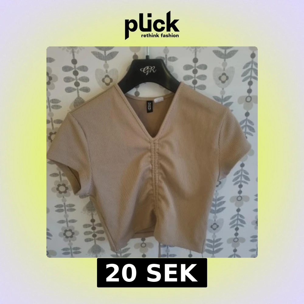 Säljer en beige croppad topp från Divided med ribbad struktur och snygg snörning framtill. Toppen har korta ärmar och v-ringad hals, perfekt för dig som gillar trendiga och bekväma plagg. Passar dig som vill ha en stilren och cool look.