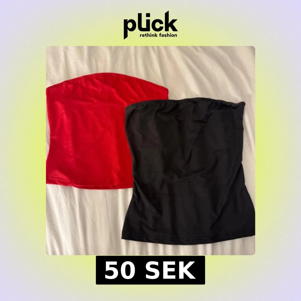 Två stilrena bandeau tubtoppar i grått och rött. S/XS