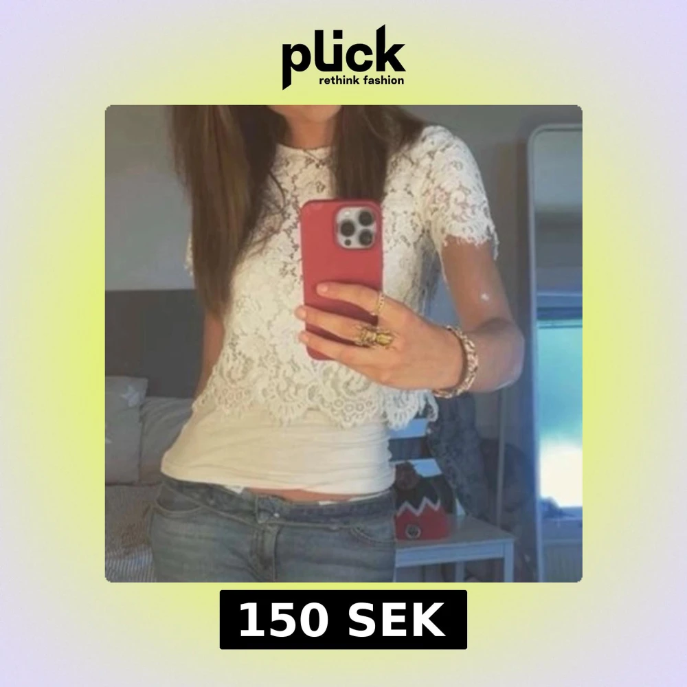 Säljer en söt vit spetsblus med korta ärmar. Den blommiga tröjan över linnet är det jag säljer!