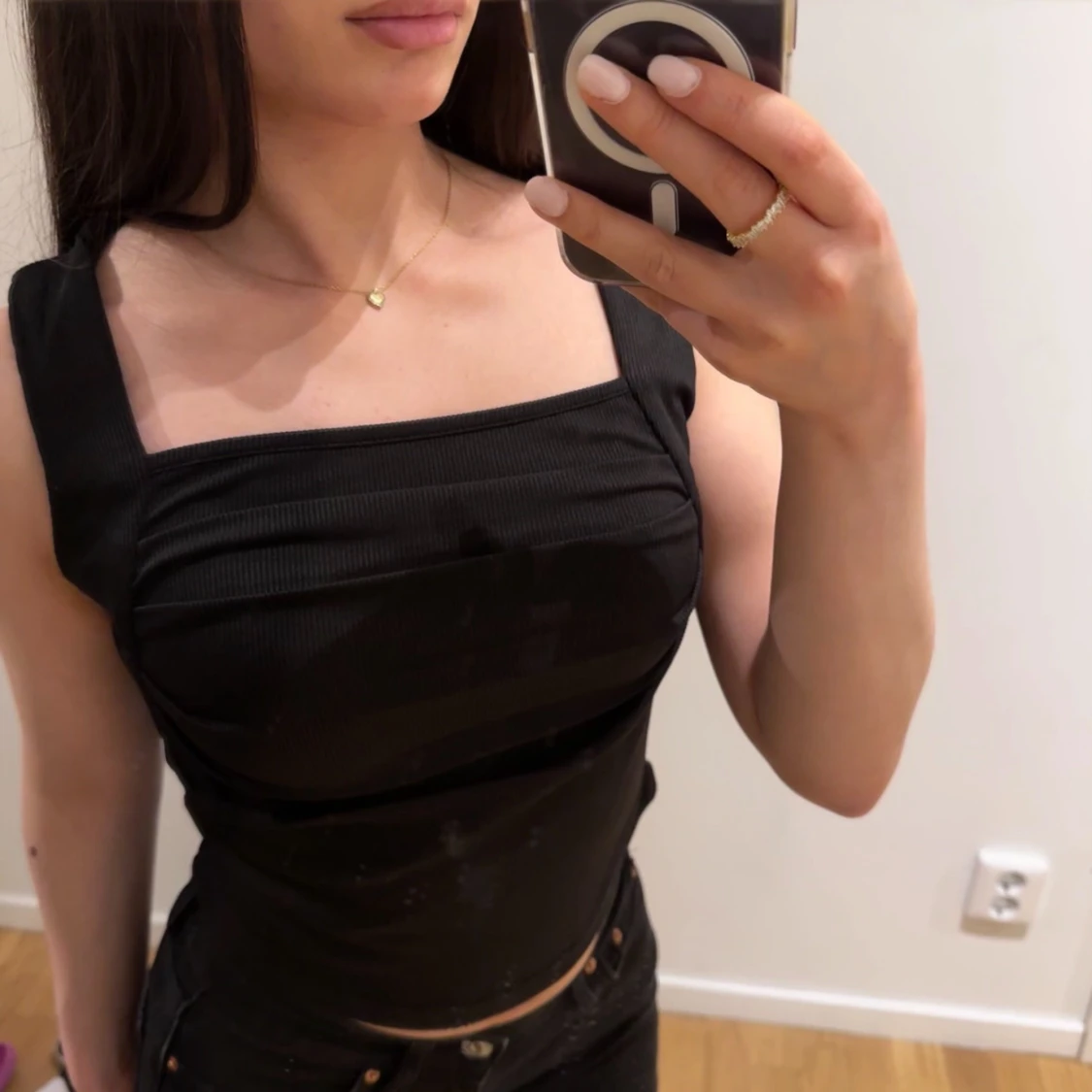 Svart ribbad linnetopp med fyrkantig urringning, i storlek s