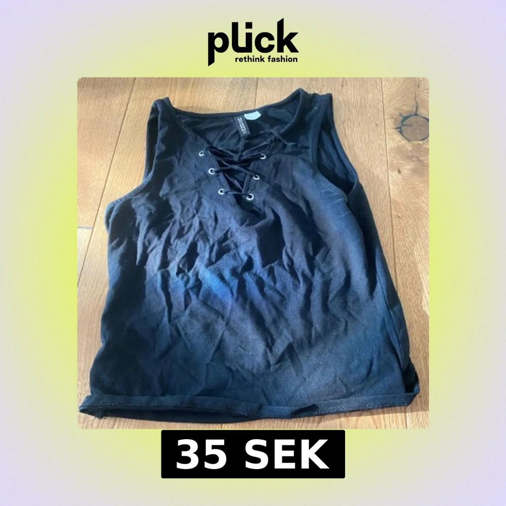 Säljer en svart ärmlös topp från H&M Divided. Toppen har en snygg snörning framtill som ger en cool detalj. Perfekt för en avslappnad stil eller att klä upp med accessoarer. Passar bra till jeans eller kjol.