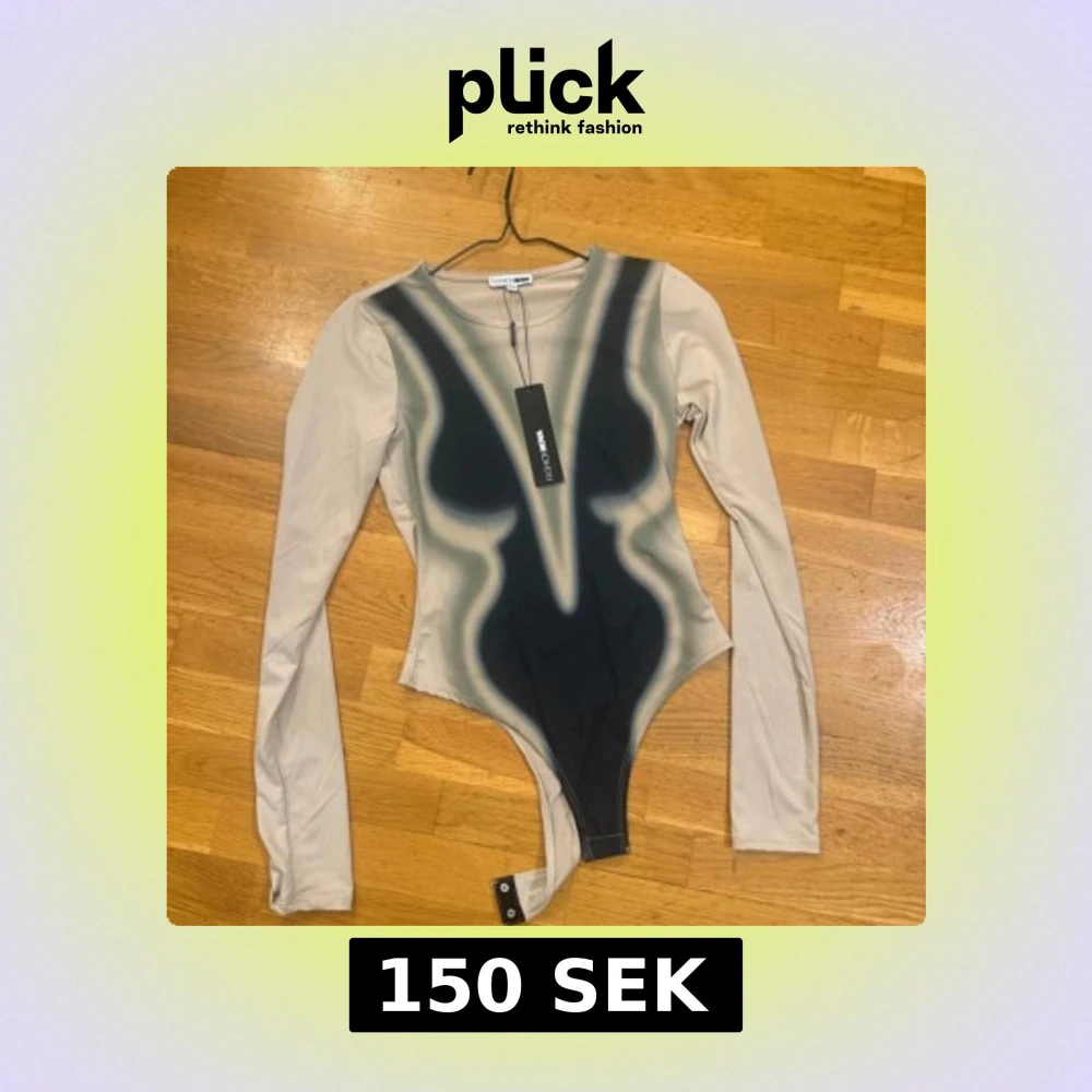 Säljer en unik body från fashionnova med långa ärmar och coolt abstrakt mönster i svart och beige. Tight passform och rund halsringning. Perfekt för dig som vill sticka ut med en edgy look.