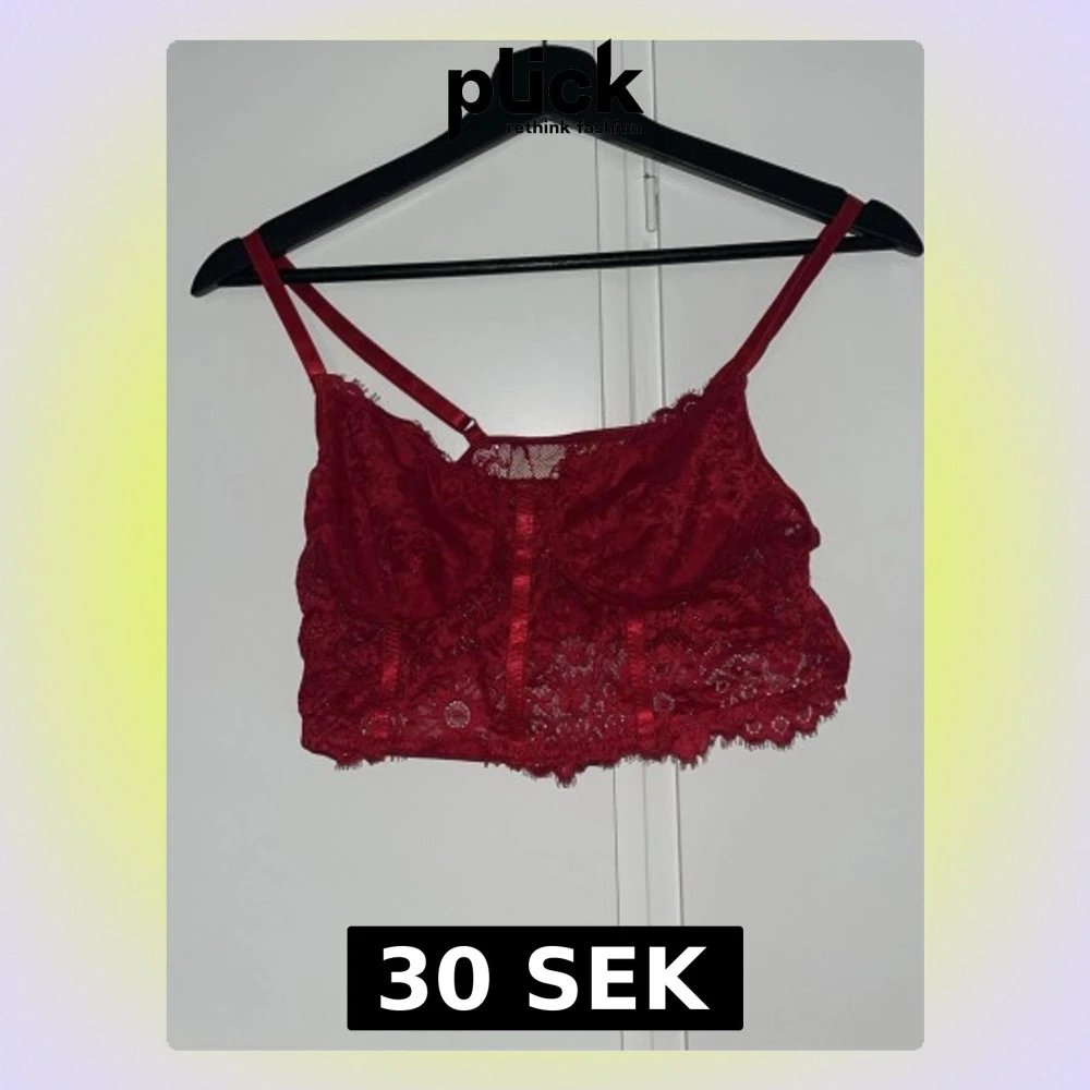 Säljer en snygg röd korsett-topp med tunna axelband och detaljerad spets. Toppen har genomskinliga partier och fina mönster i spetsen, samt dekorativa band framtill. Perfekt för att lyfta din outfit med en touch av romantik och edge. Har även justerbara band. Använd ett flertal gånger och är från SHEIN