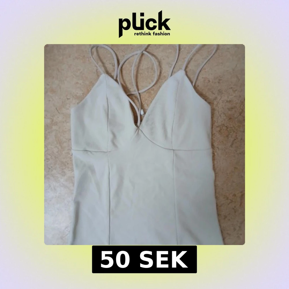 Linne med smala dubbla axelband och v-ringad front. Storlek: S