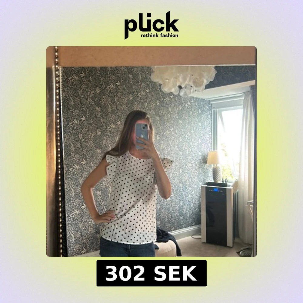 Supersöt vit blus med svarta prickar och volangärmar. (Pris kan diskuteras) Den är lite stor för mig så de är därför jag säljer den. Har aldrig andvänt den💓💓 (passa på att köpa nu me fri frakt de försvinner snart)