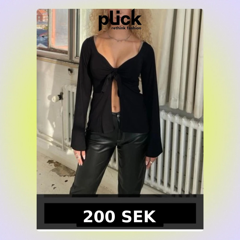 Trendig svart långärmad topp med djup v-ringning och knyt framtill som ger en öppen detalj över magen. Tunn och mjuk i materialet, lätt croppad passform och vida ärmar. Perfekt för dig som vill ha en edgy och snygg look.