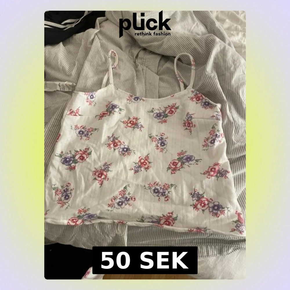 Supersöt vit linnetopp med tunna axelband och blommigt mönster i lila och rött. Toppen har en rak passform och är tillverkad i ett mjukt, lätt material som passar perfekt till varma dagar. Perfekt att styla med jeans eller kjol för en fräsch look. Den är i ungefär storlek small/medium.