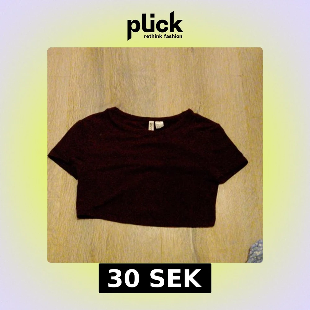 Säljer en mörkröd croppad topp från Divided. Toppen har korta ärmar och rund halsringning, perfekt för att matcha med höga jeans eller kjol. Enkel och stilren design som funkar till många olika looks.