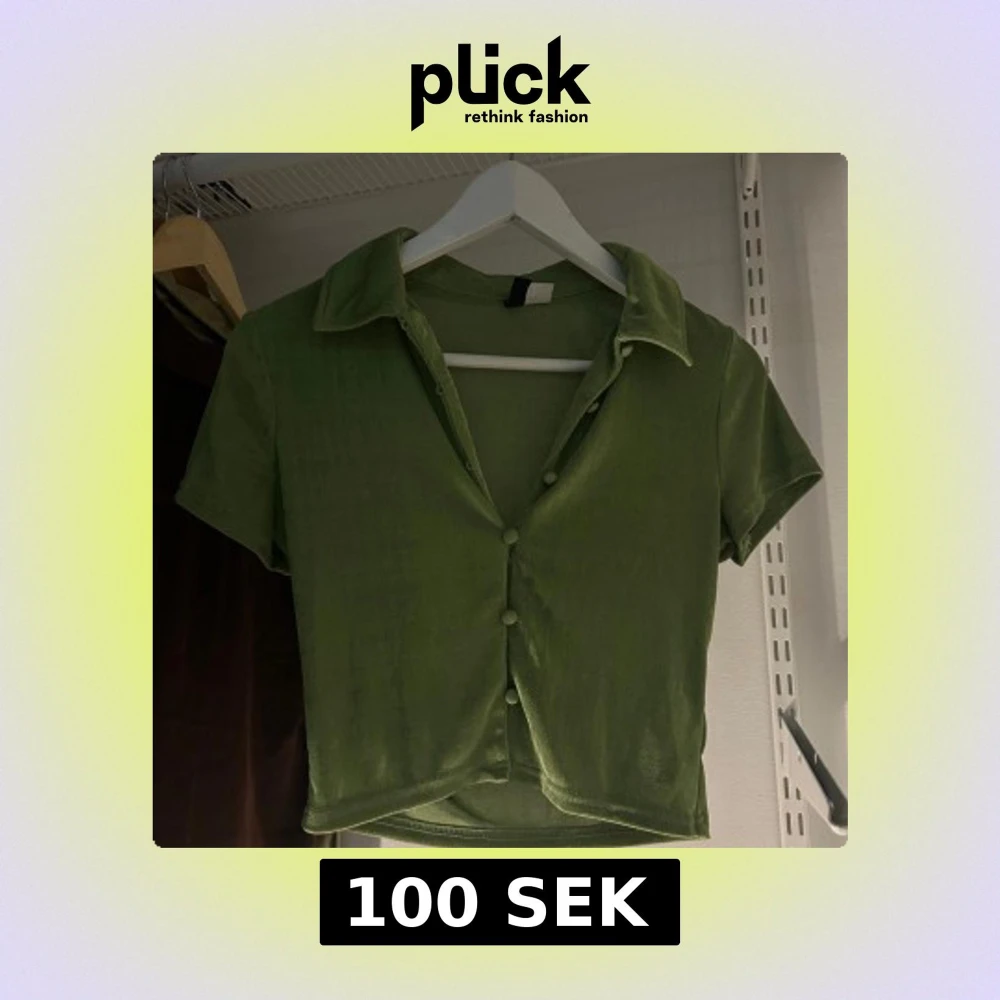 Snygg grön kortärmad topp med knappar framtill och klassisk krage. Perfekt för en avslappnad stil.