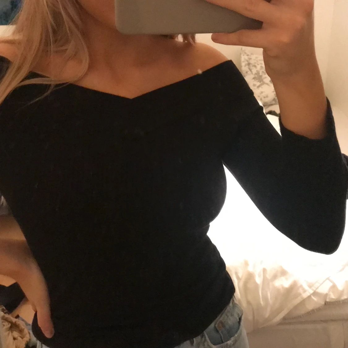 Trekvartslånga ärmar urringad topp