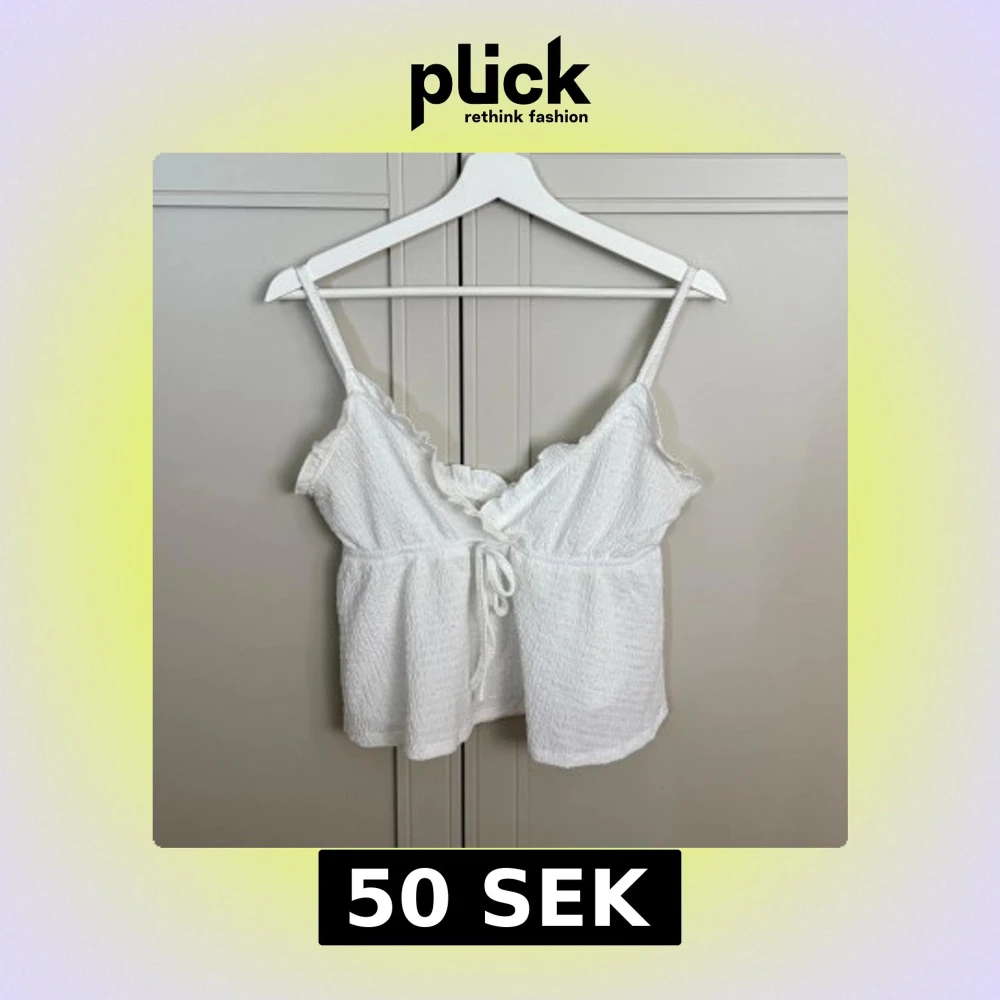 Så fin vit topp i storlek S. Kan tyvärr inte skicka bild med hur den sitter på då den inte passar mig💗
