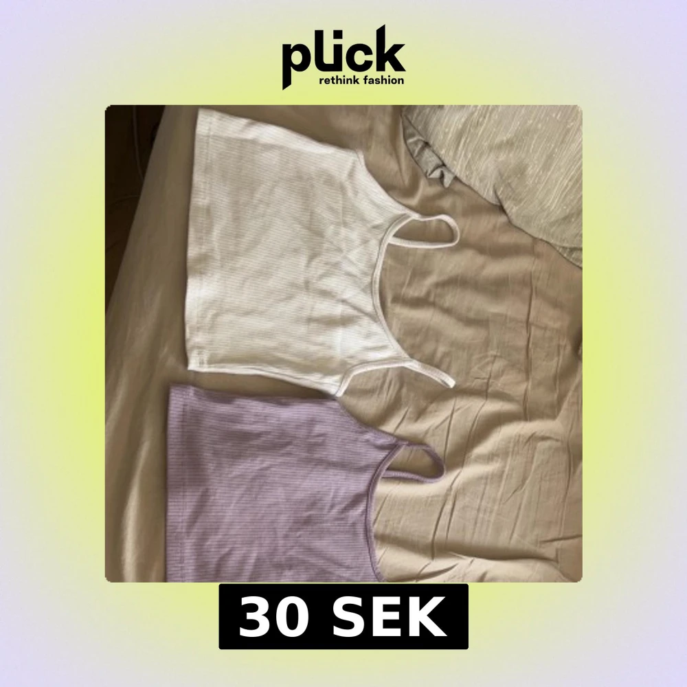 Säljer tre ribbade linnen i storlek S. Färgerna är vit, lila och ljusblå. Perfekta för sommaren med en enkel och stilren design. 30kr/st eller 70kr för alla