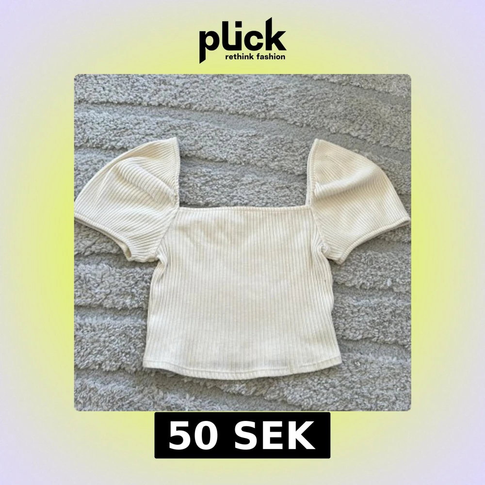 Snygg beige ribbad topp med korta puffärmar och fyrkantig halsringning. Perfekt för en trendig och stilren look. Mjuk och stretchig i materialet.