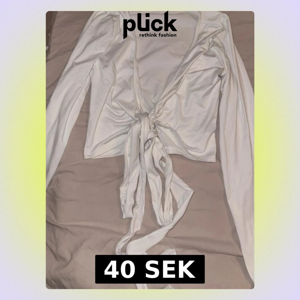 Trendig vit omlottopp från SHEIN med långa ärmar och knyt framtill. Toppen är croppad och har en djup v-ringning som ger en snygg siluett. Perfekt att styla med höga jeans eller kjol för en cool look.