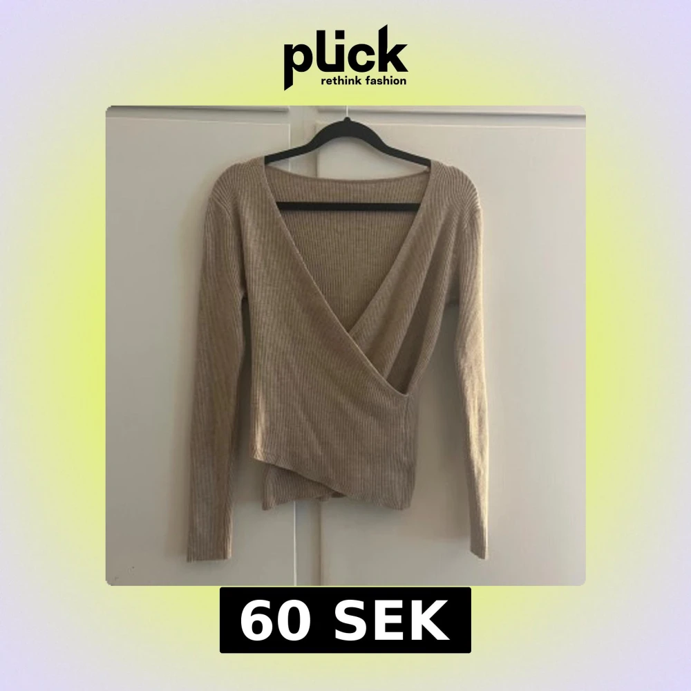 Snygg beige omlottopp med ribbad struktur. Långärmad modell som sitter väldigt skönt. Har för mig att storleken är M men skulle säga att det passar en S oxå (lappen är inte kvar).