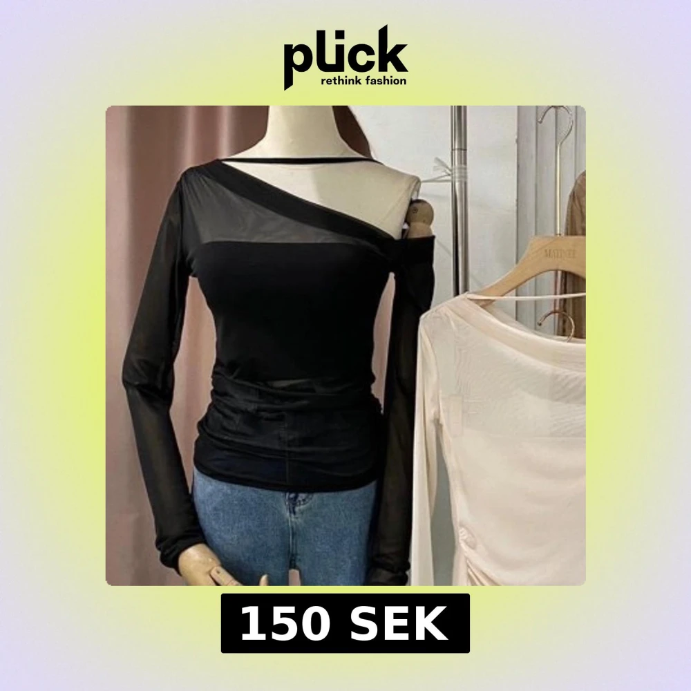 Trendig svart oneshoulder topp med lång ärm och transparenta detaljer. Perfekt för en stilren och modern look.