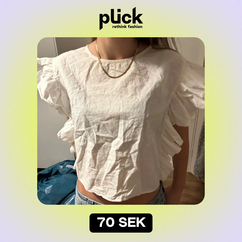 Säljer en söt vit blus med volangdetaljer på ärmarna💕