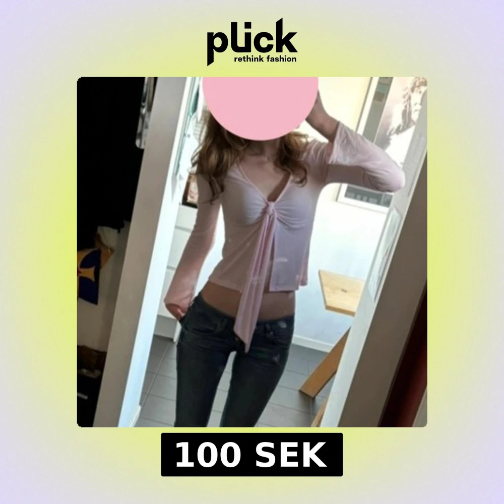 Säljer en ljusrosa topp med långa ärmar och djup v-ringning. Toppen har en snygg knyt-detalj framtill som ger en trendig look. Perfekt att styla med jeans eller kjol för en cool outfit.