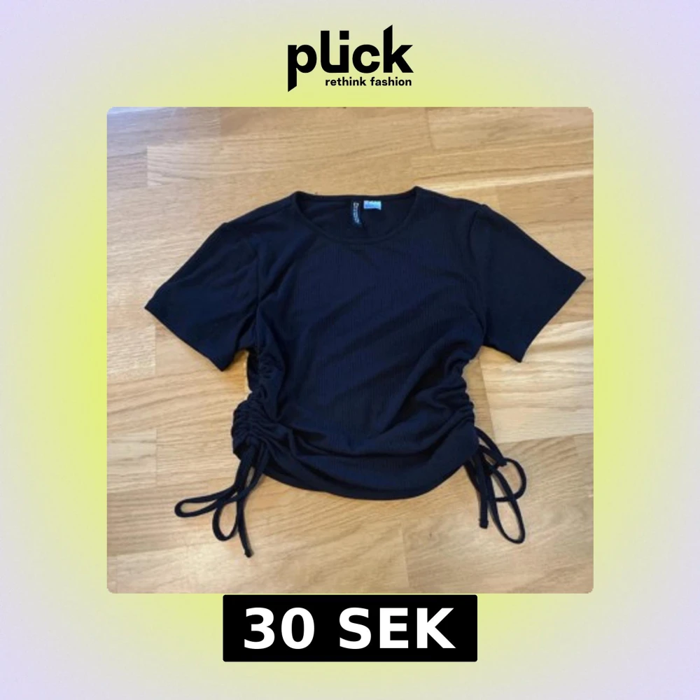 Säljer en svart ribbad topp från H&M Divided i storlek S. Toppen har korta ärmar och cool snörning på båda sidorna som ger en snygg, justerbar passform. Materialet är mjukt och stretchigt, perfekt för att skapa en chill och trendig look.