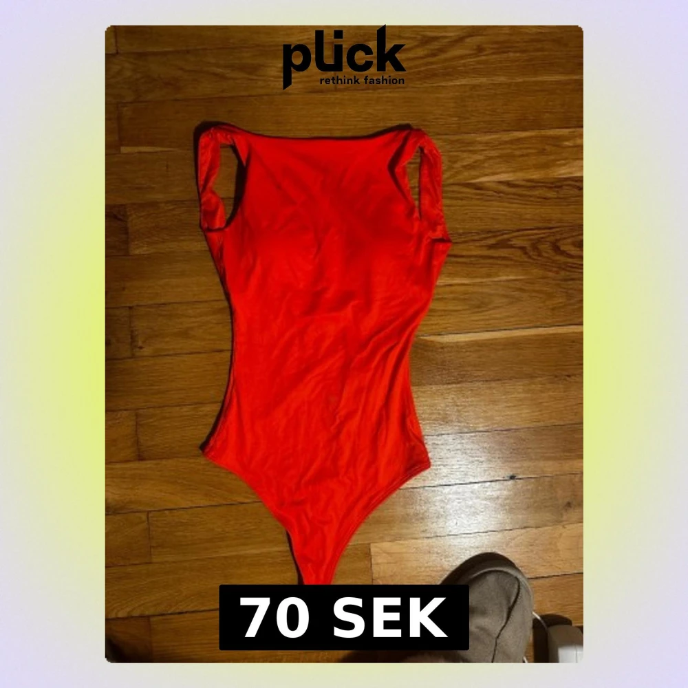Säljer en röd ärmlös topp med breda axelband och rund halsringning. Toppen är tillverkad i ett stretchigt material som sitter tight mot kroppen och har en enkel, enfärgad design utan mönster eller detaljer. Perfekt för att skapa en clean och modern look.