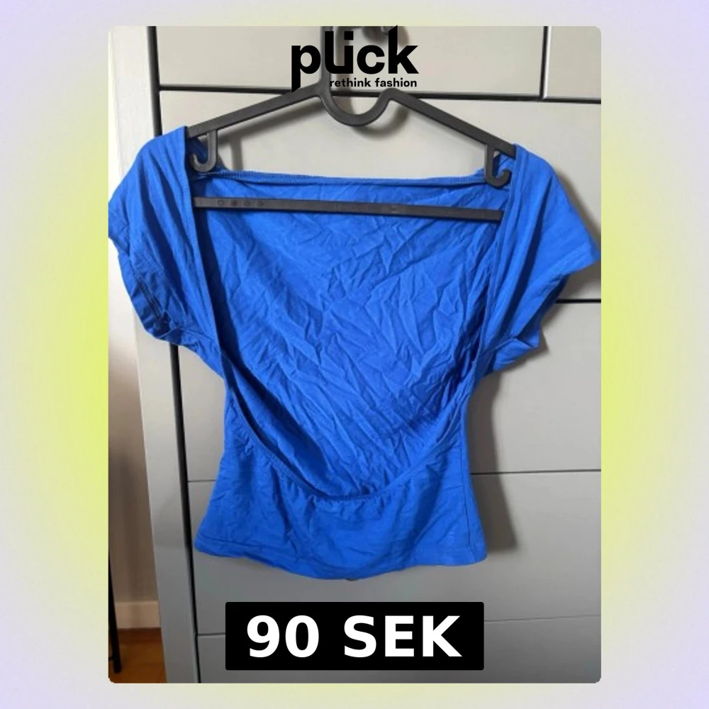 Snygg blå öppen rygg topp med korta ärmar. Toppen är figurnära och gjord i mjukt bomullsmaterial, perfekt för en trendig och avslappnad look. Enkel att matcha med både jeans och kjol.