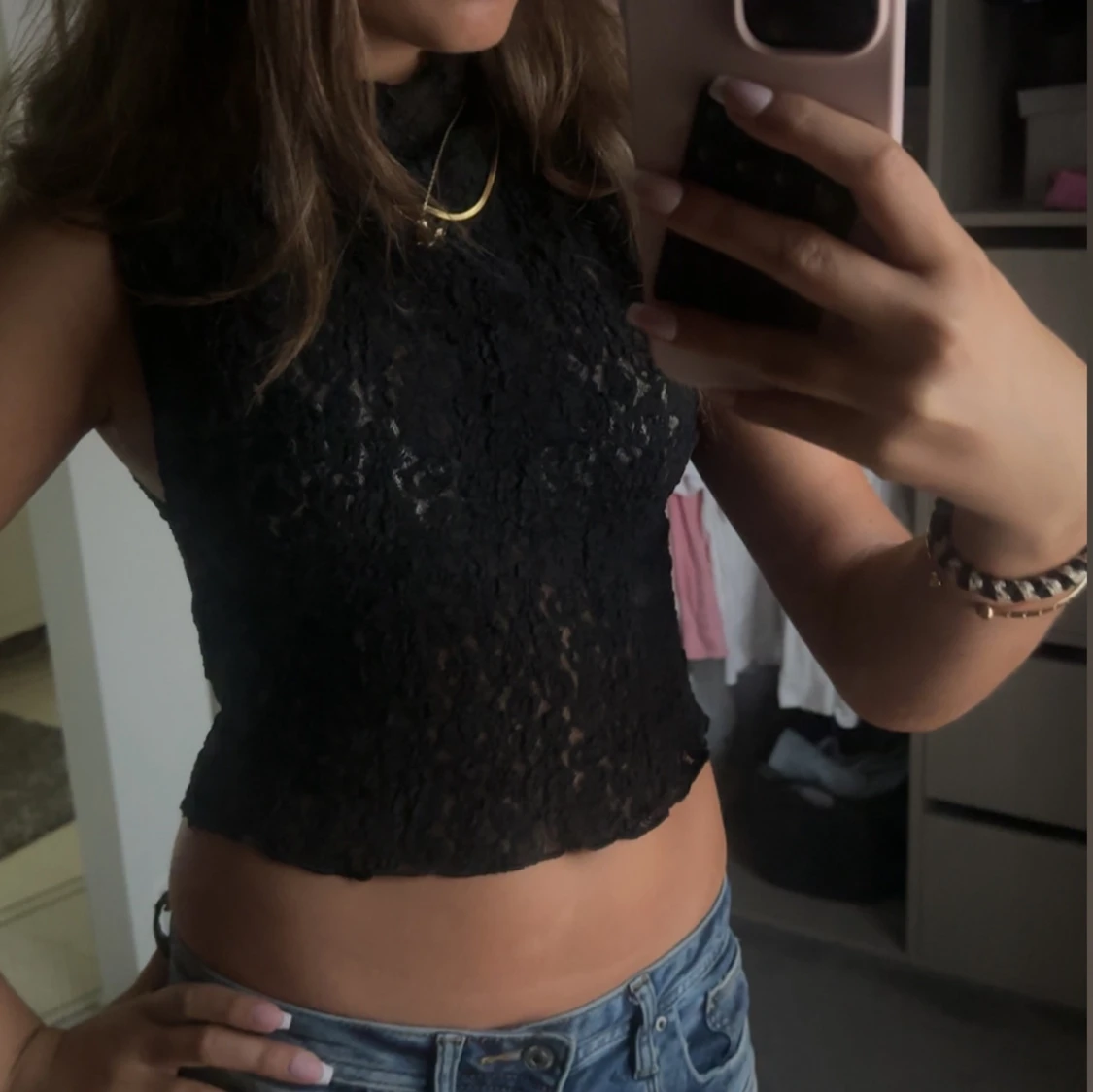 Säljer en svart spets top i storleck S helt oanvänd m prislappen kvar!❤️❤️❤️pris kan diskuteras