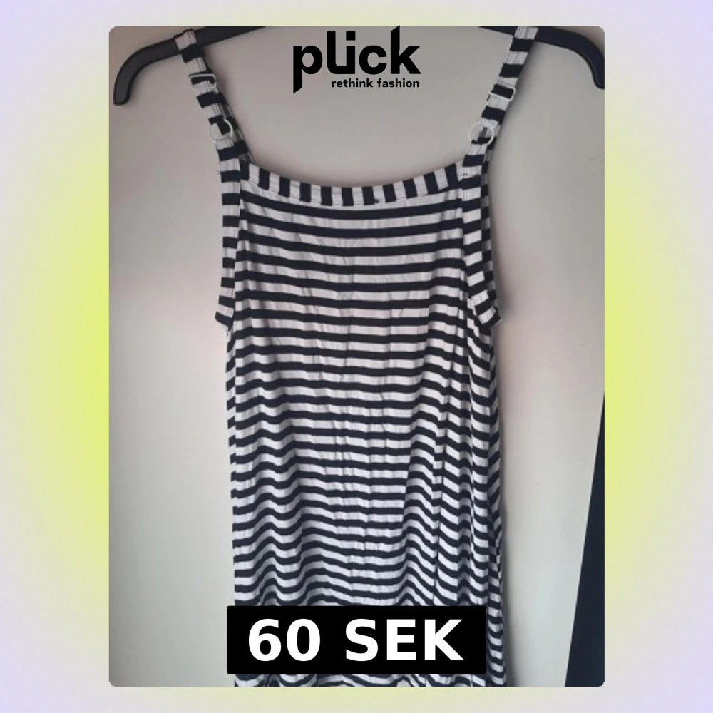 Säljer en svartvit randig linnetopp från Gozzip med justerbara axelband och avslappnad passform. Toppen är lång och fungerar även som en kort klänning