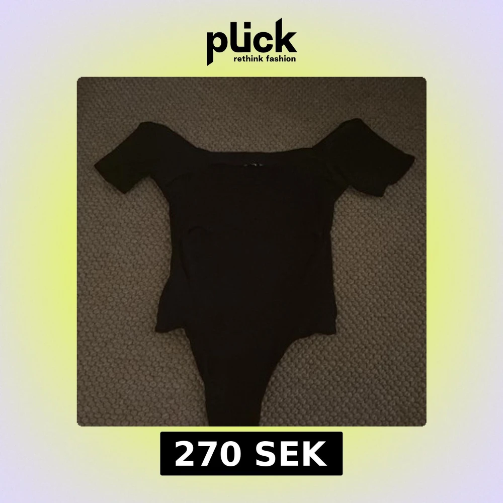 Snygg svart offshoulder bodysuit med korta ärmar. Perfekt för en stilren look. Passar bra till både jeans och kjol.