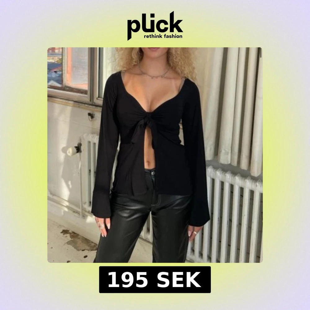 Trendig svart långärmad topp med knyt framtill. Perfekt för en stilren look med en twist. Passar bra till både jeans och kjol.